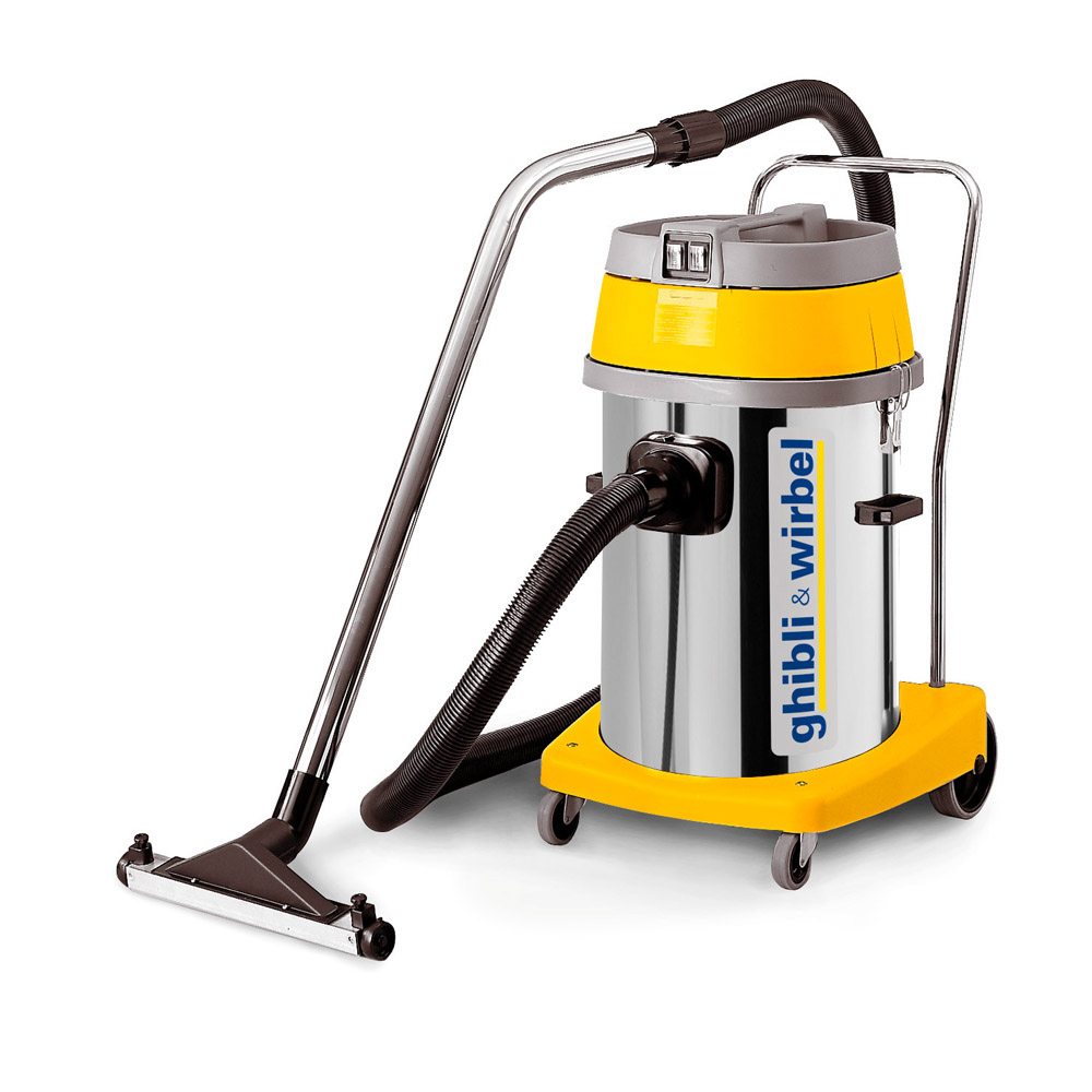 Aspirapolvere/liquidi carrellato di grandi prestazioni. Dotato di tre motori. Possibilità di utilizzare un singolo motore, due o tre contemporaneamente.