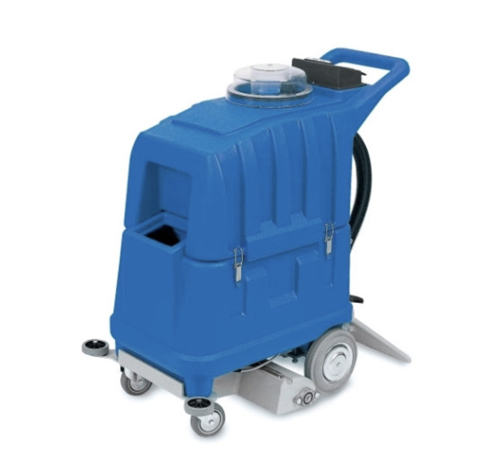 Lavamoquette-lavapavimenti compatta, a trazione manuale. Lava, spazzola ed asciuga una striscia di 50 cm di moquette, camminando in avanti e pulendo fino a 500mq di moquette in un’ora. Il sistema di aspirazione ad alta depressione consente di rimuovere la massima quantità di sporco dalla moquette e di ottenere un tempo di asciugatura molto breve.